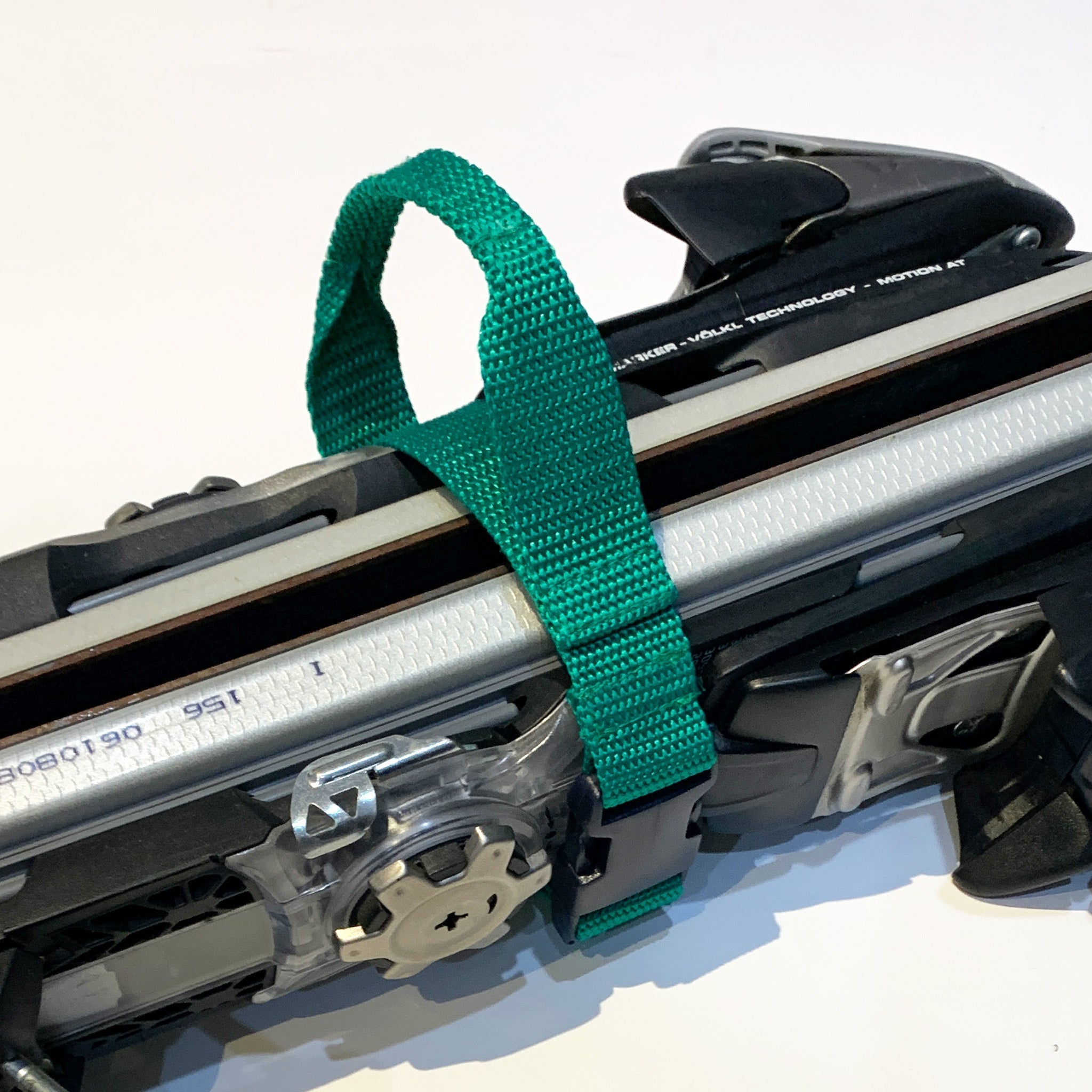 The EZ Ski Tote is a clever design to carry skis conveniently. The strap is made of high density and quality nylon that is super durable. Easy to use with a snap and click buckle. Ergonomically designed to be lightweight and comfortable, the EZ Ski Tote is be best way to carry skis.