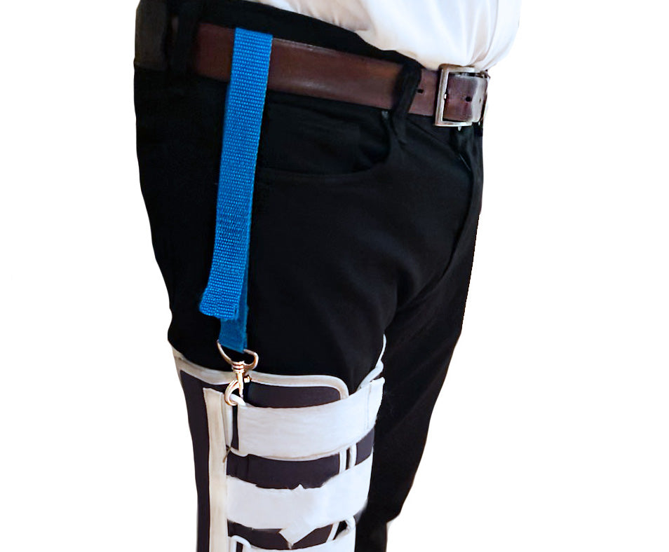 The EZ Orthopaedic support is designed with comfort in mind. It prevents your leg brace from falling down, by securing the brace to one's belt, thereby alleviating any pain or discomfort associated with an insecure brace.